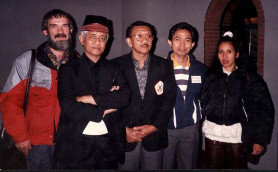 Guru Standing from the left are Martin Jansen, H Harsoyo, Noto Soejitno, Sakti Tammat, and Inggrid. The photo was taken in The Hague in 1990. Martin thaught me about tradional Indonesian weapons and H Harsoyo thaught me the pesilat way of live and the importance of truth to oneself and others. |